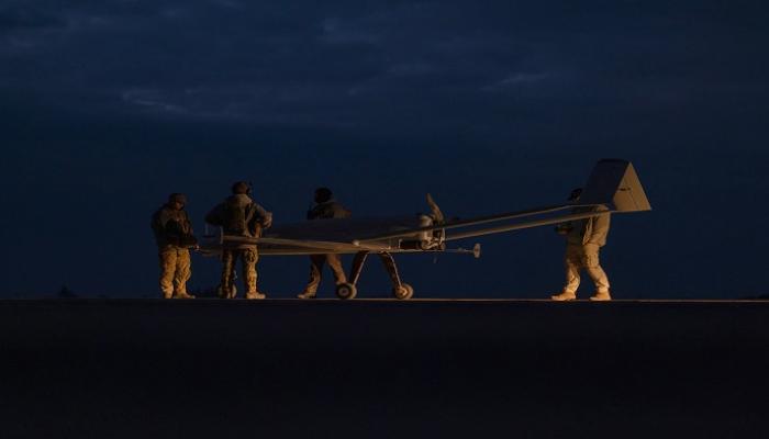 جنود أوكرانيون يطلقون طائرة مسيرة