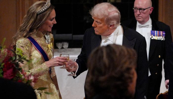 وجاءت المأدبة بعد يوم حافل بالأحداث، حيث قام الرئيس الأمريكي وزوجته بزيارة مؤثرة إلى كنيسة القديس جورج حيث يرقد جثمان الملكة إليزابيث الثانية، ووضع إكليلا من الزهور ووصف الأمر بأنه “شرف عظيم”.