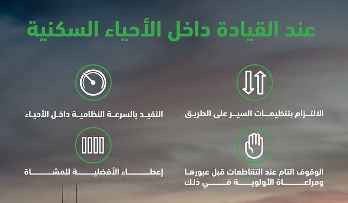دعا المرور السعودي قائدي المركبات إلى الالتزام بالسرعة النظامية داخل الأحياء السكنية حفاظًا على سلامة السكان والمشاة، مشددًا على أهمية اتباع أنظمة السير والالتزام بالتعليمات المرورية داخل الطرق الداخلية.