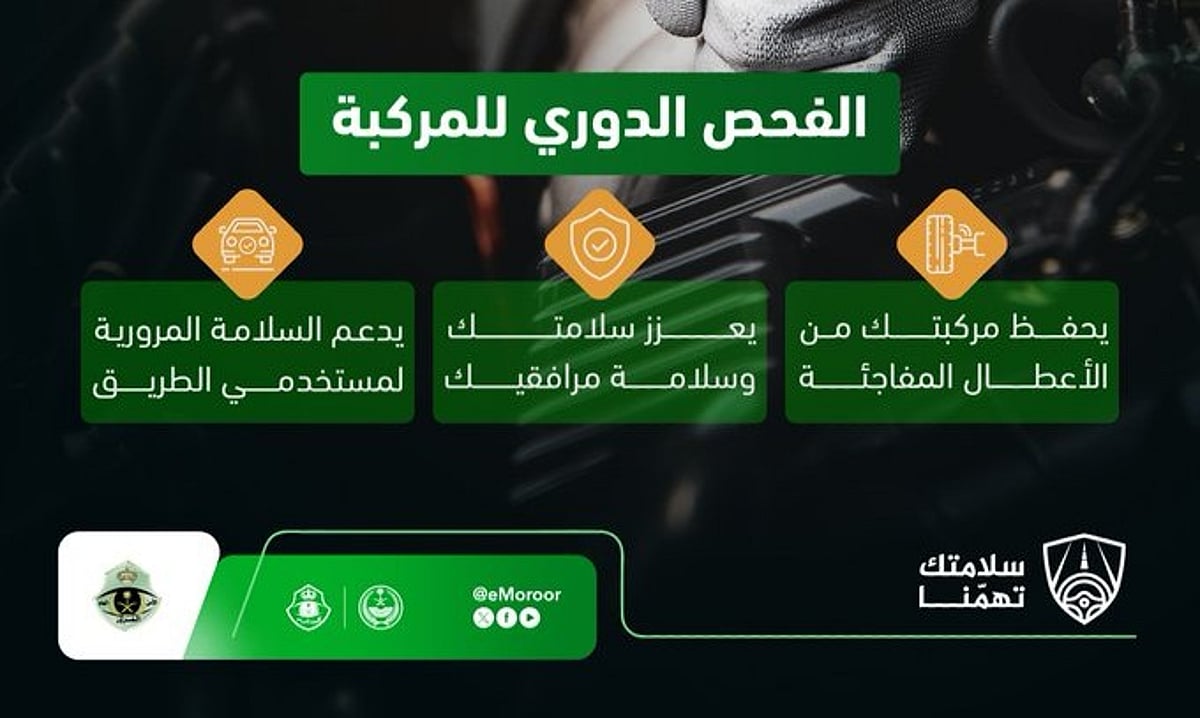 وشدد المرور على أن الفحص الدوري لا يقتصر أثره على المركبة وسائقها فقط، بل يسهم أيضًا في تعزيز السلامة المرورية لمستخدمي الطريق كافة، من خلال تقليل احتمالية وقوع الحوادث الناتجة عن الأعطال المفاجئة.