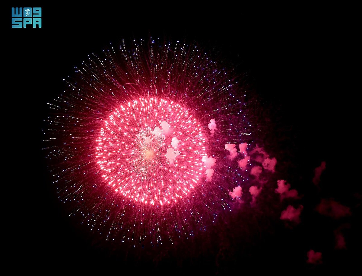 وغطت الألعاب النارية بألوانها الزاهية وصورها وأشكالها المتنوعة سماء الأحساء، وشهد متنزه الملك عبدالله البيئي حضورًا كبيرًا من المواطنين والمقيمين والزوّار لمتابعة هذه العروض.