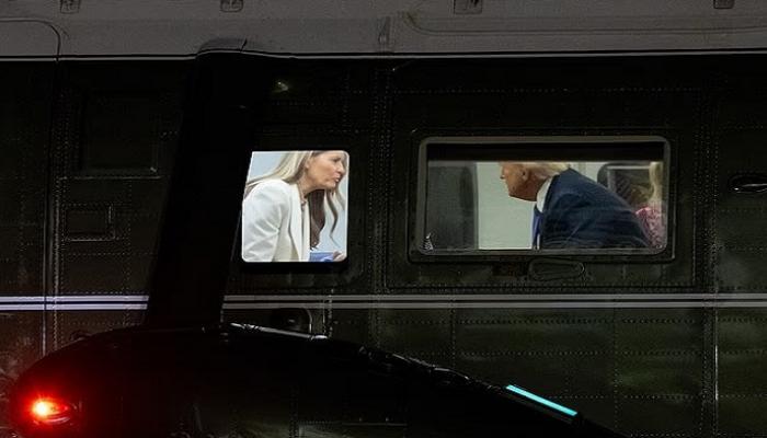 وعلى الرغم من التوتر الظاهر، خرج الزوجان بعدها متشابكي الأيدي، بينما كان ترامب يلوّح للصحفيين.