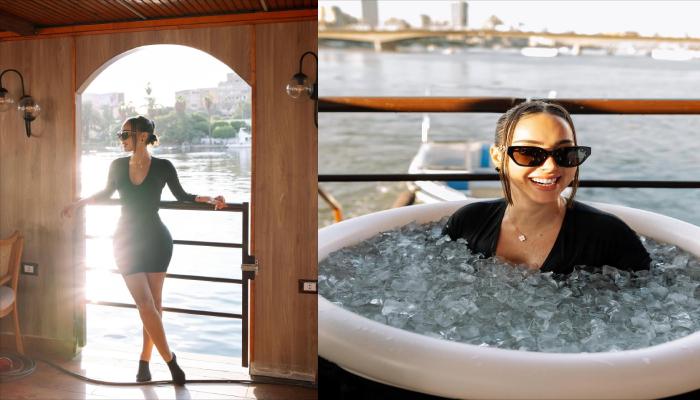 وثّقت الفنانة المغربية تفاصيل التجربة التي جاءت ضمن تدريبات رياضية واستشفائية خاصة، واستمرت في متابعة جميع مراحلها، بدءًا من دخولها إلى برميل كبير يحتوي على كمية ملحوظة من الثلج ضمن غاية استشفائية.