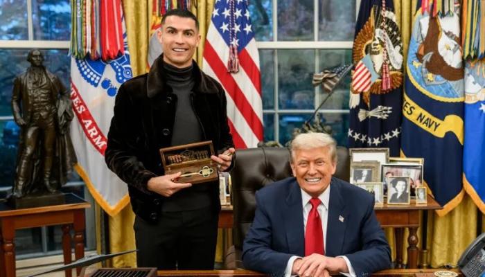 وحسب صحيفة “ديلي ميل” البريطانية، فإن ترامب أهدى كريستيانو رونالدو مفتاحاً ذهبياً للبيت الأبيض.