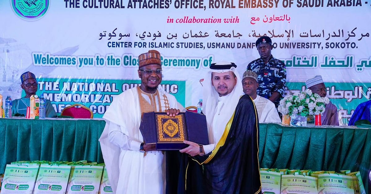 اختتمت الملحقية الدينية بسفارة المملكة العربية السعودية في أبوجا، نيجيريا، المسابقة الوطنية لتحفيظ القرآن الكريم وتفسيره، التي نُظمت بالتعاون مع مركز الدراسات الإسلامية بجامعة عثمان دان فوديو في سوكوتو، وذلك برعاية القائم بالأعمال سعد بن فهد المري، وبحضور الملحق الديني المكلف يحيى السفياني، وعدد من كبار المسؤولين والعلماء والأكاديميين، من بينهم وزير الاتصالات والاقتصاد الرقمي النيجيري السابق الدكتور عيسى علي بانتامي.