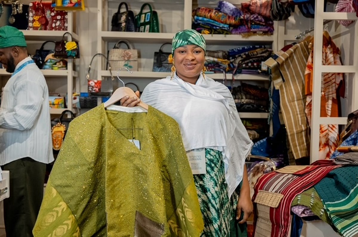 شهد الأسبوع السعودي الدولي للحرف اليدوية “بَنان” في الرياض حضورًا بارزًا للفنانة البريطانية النيجيرية أوسيباكايني أغبييغبي، المعروفة باسم “سيبا”، التي جذبت الزوار بعرض أعمال فنية مستوحاة من فن النسيج الشريطي التقليدي في غرب أفريقيا، في محاولة لإحياء هذا الفن العريق وإعادته إلى الواجهة العالمية.