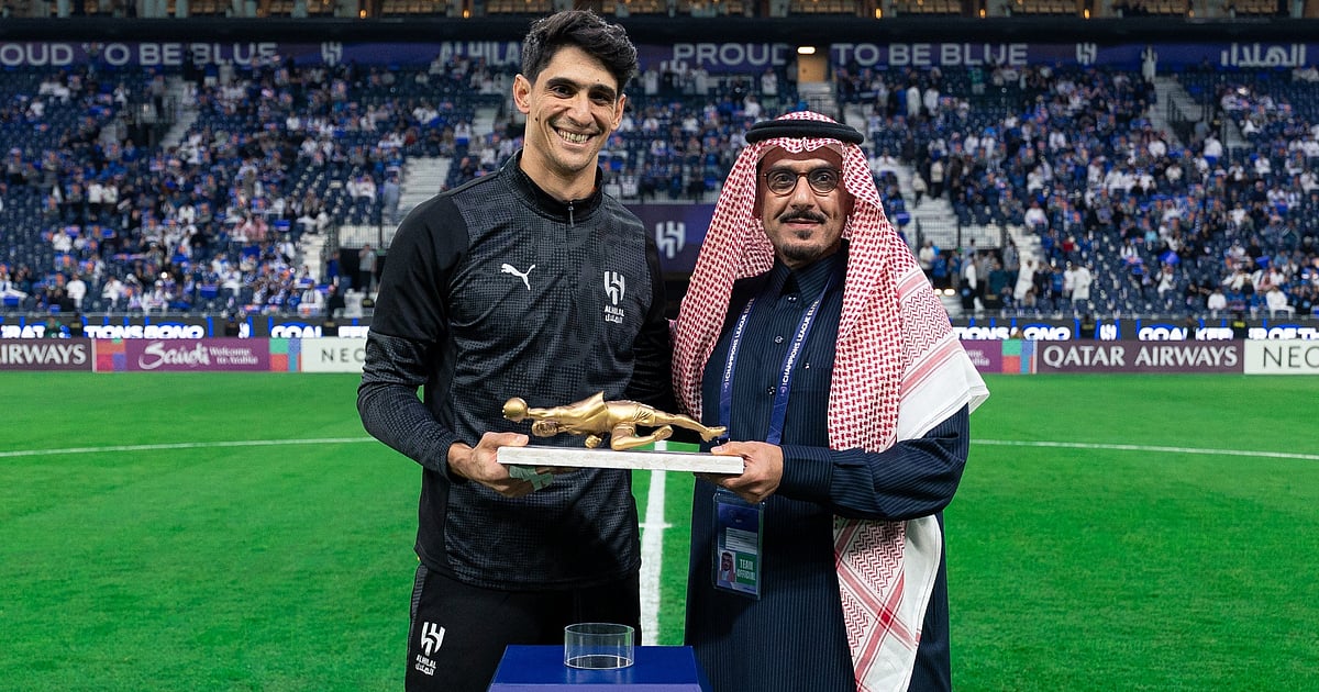 قدم رئيس مجلس إدارة شركة نادي الهلال، الأمير نواف بن سعد، هدية تذكارية لحارس الفريق المغربي ياسين بونو، بعد حصوله على جائزة أفضل حارس أفريقي لعام 2025، وذلك قبل انطلاق مباراة الهلال أمام الشرطة العراقي، المقامة مساء اليوم الثلاثاء على ملعب المملكة أرينا بالرياض، ضمن الجولة الخامسة من دور المجموعات في دوري أبطال آسيا للنخبة.
