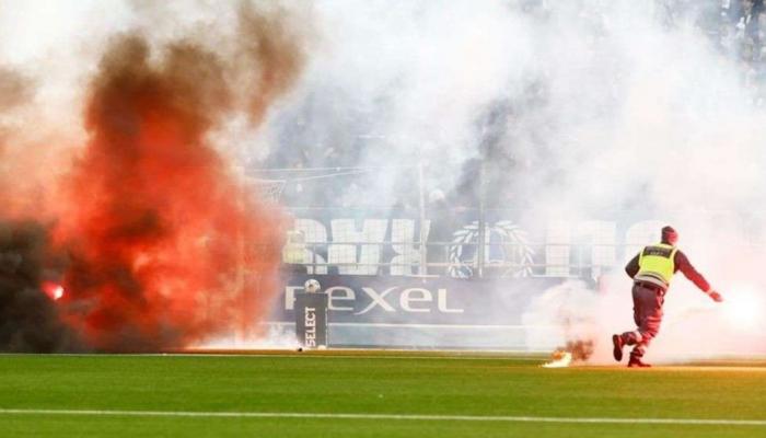 ومع تلاشي الأمل تقريبًا، أُلقيت ألعاب نارية على أرض الملعب في الدقيقة 86، فأوقف الحكم اللعب فورًا وأشار إلى النفق.