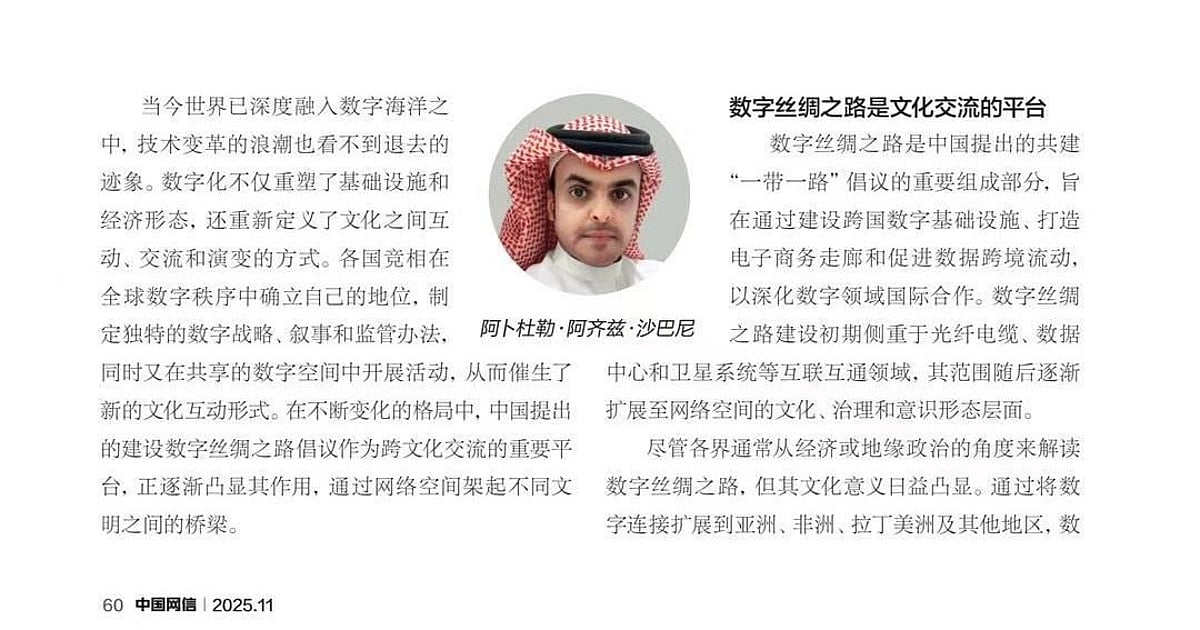 مجلة “الصين للفضاء السيبراني” تنشر لباحث سعودي ورقة علمية عن “طريق الحرير الرقمي ودول الشرق الأوسط”