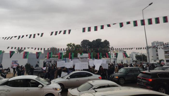 وتظاهر المئات في شوارع المدينة من ساحة الانتصار إلى شارع طرابلس، وسط هتافات غاضبة تطالب بتحقيق بتجاوز المرحلة الانتقالية وإجراء انتخابات للمضي قدما بعد أكثر من عقد ونصف الجمود.