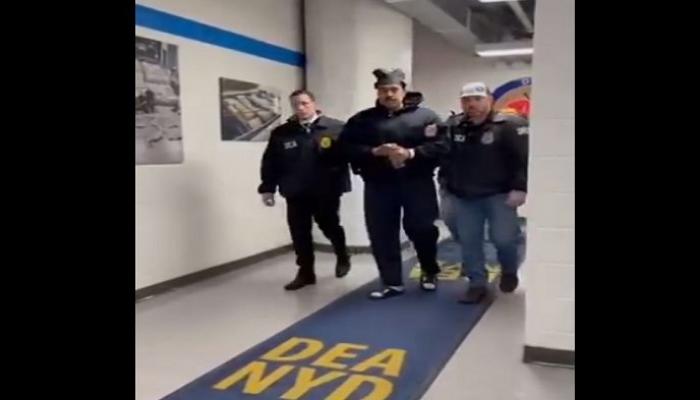 وفي إجراء متبع مع الموقوفين البارزين، أخرجت السلطات الأمريكية مادورو أمام وسائل الإعلام أثناء نقله، لإظهار أنه قيد الاعتقال.