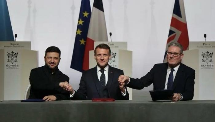 وفي السياق نفسه، وقّع ماكرون ورئيس الوزراء البريطاني كير ستارمر والرئيس الأوكراني فولوديمير زيلينسكي، الثلاثاء، إعلان نوايا بشأن نشر قوة متعددة الجنسيات عقب وقف لإطلاق النار في أوكرانيا، وهو احتمال لا يزال بعيد المنال.