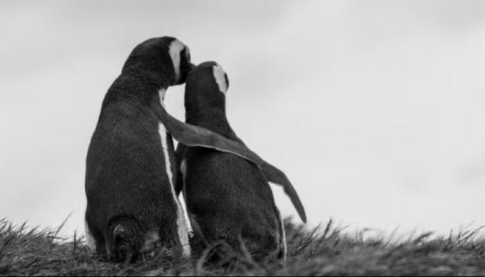 في صورة بطريقين يتعانقان، اختصر رئيس كوريا الجنوبية فكرة أن البقاء في هذا الجليد القاسي لا يكون إلا معا، حتى بين خصمين فرقتهما الحدود.