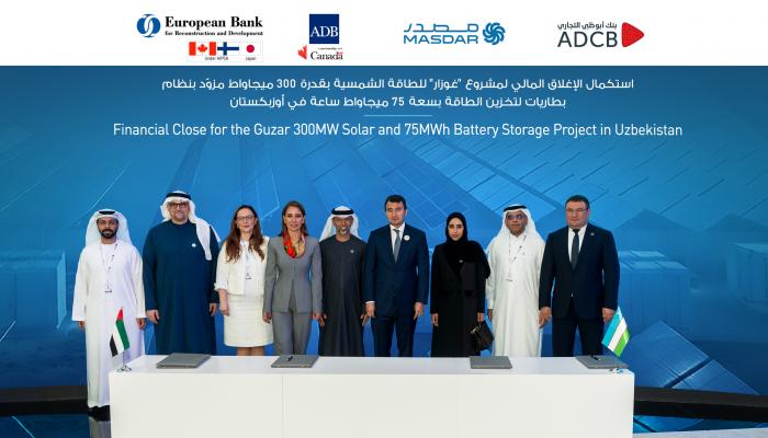 وبحضور سهيل بن محمد المزروعي، وزير الطاقة والبنية التحتية؛ وجمشيد خوجاييف، نائب رئيس الوزراء في أوزبكستان؛ وجورابيك ميرزامامودوف، وزير الطاقة في أوزبكستان؛ ومحمد جميل الرمحي، الرئيس التنفيذي لشركة “مصدر”، وقع اتفاقية استكمال الإغلاق المالي كل من عبد العزيز العبيدلي، الرئيس التنفيذي للعمليات في شركة “مصدر”، وممثلون عن البنك الأوروبي لإعادة الإعمار والتنمية، وبنك التنمية الآسيوي، وبنك أبوظبي التجاري، وذلك ضمن مراسم أقيمت في جناح شركة “مصدر” ضمن أسبوع أبوظبي للاستدامة.