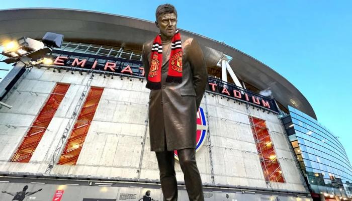 وأضاف مشجع رابع لنادي أرسنال، مرفقاً صورة ساخرة للمدرب المؤقت لمانشستر يونايتد: “تمثال لمايكل كاريك خارج ملعب الإمارات”.