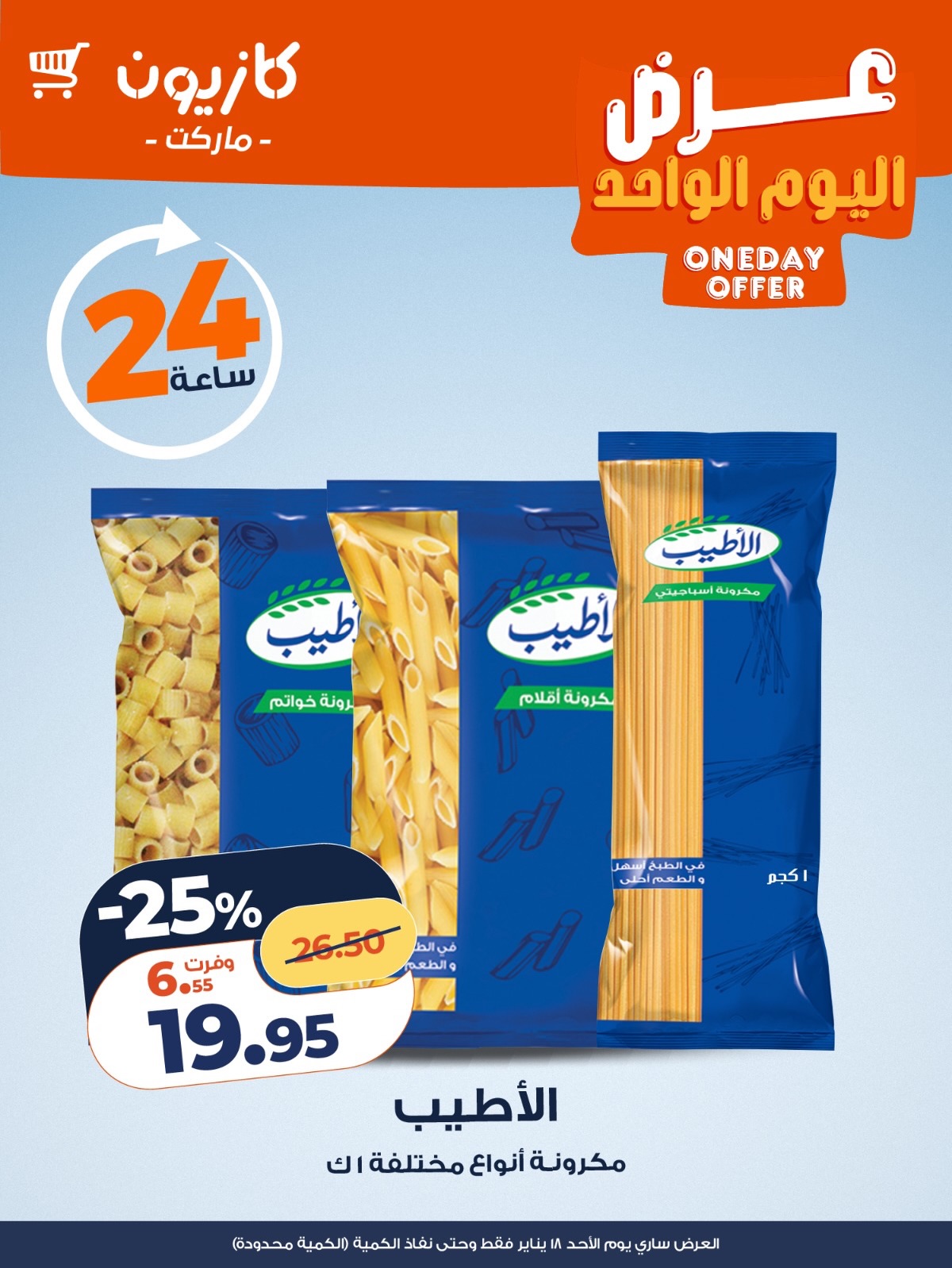 نستعرض اليوم عروض كازيون ماركت 18 يناير 2026 ، حيث يقدم المتجر أحدث الخصومات على مجموعة كبيرة من المنتجات الأساسية.