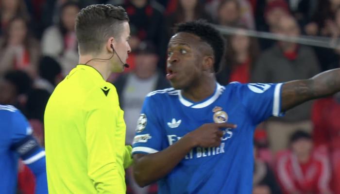 هدف فينيسيوس جاء بالدقيقة الـ50 من عمر اللقاء، وبمجرد سماع الكلمات من لاعب بنفيكا توجه اللاعب البرازيلي للحكم لإبلاغه.