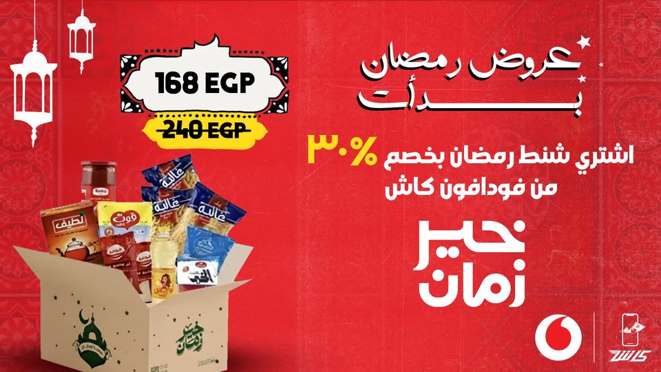 عملاء فودافون كاش دلوقتي هيقدروا يشتروا شنط رمضان من خلال فودافون كاش بخصم حتى 30% مع عرض خير زمان أو BIM