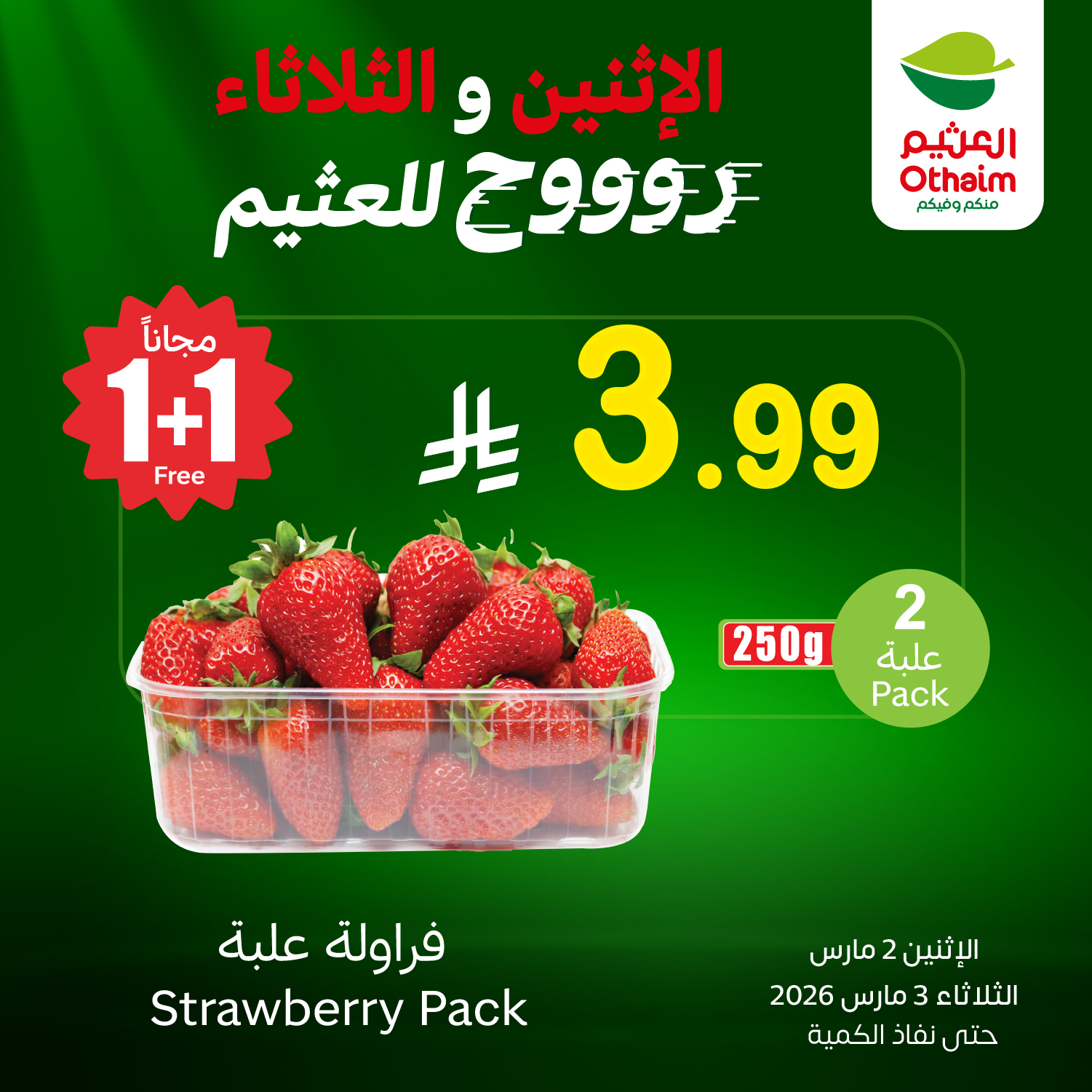 فراولة علبة + علبة مجانًا بـ 3.99 ريال