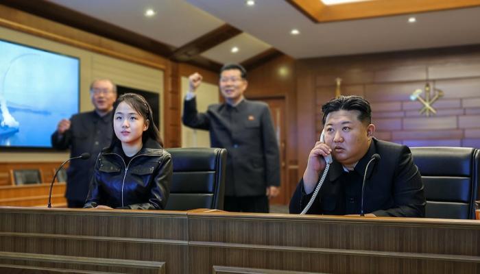 وأظهرت الصور التي نشرتها وسائل الإعلام الحكومية ابنته “جو-إيه” وهي تشرف على الاختبار.