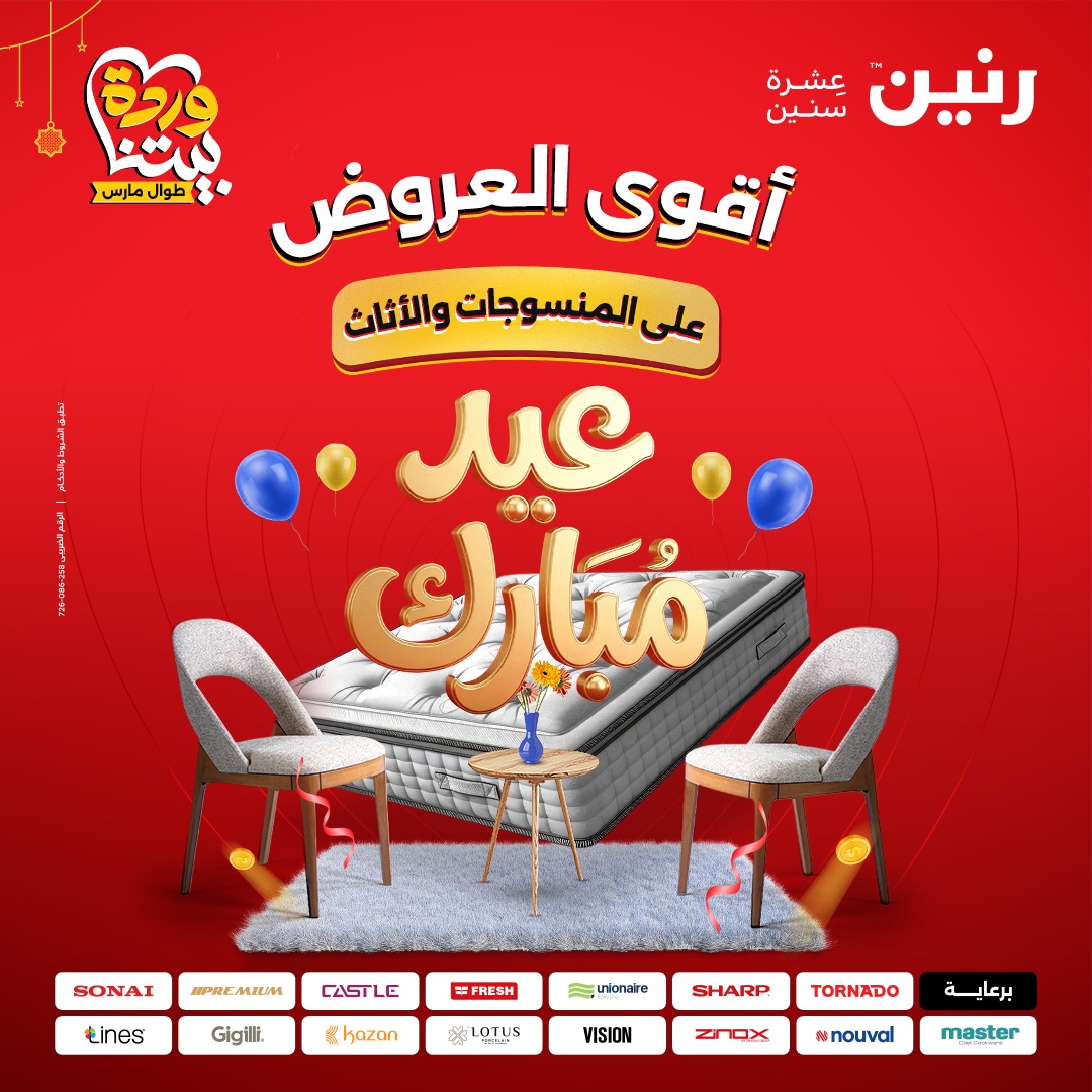 عروض رنين على الاثاث و المنسوجات 19-23 مارس 2026