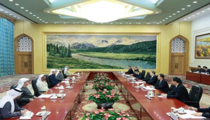وخلال الزيارة، أجرى خلدون المبارك مباحثات مع دينغ شيويه شيانغ، نائب رئيس مجلس الدولة وعضو اللجنة الدائمة للمكتب السياسي للحزب الشيوعي الصيني، إضافة إلى وانغ يي وزير الخارجية الصيني.