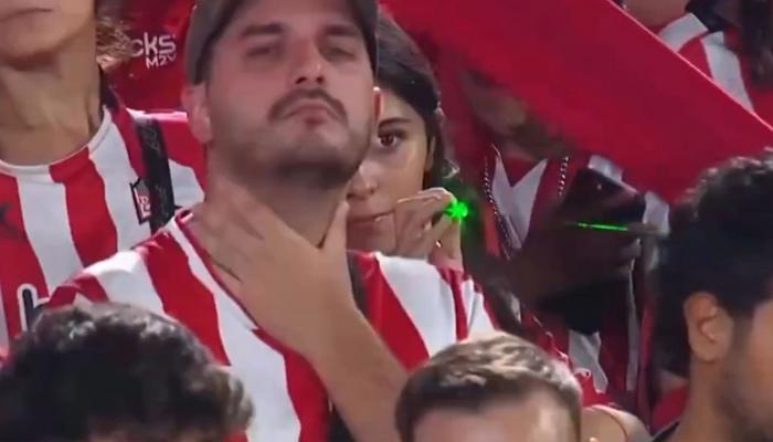 رصدت الكاميرات مشجعة وهي تستخدم شعاع الليزر لتشتيت انتباه حارس المرمى.