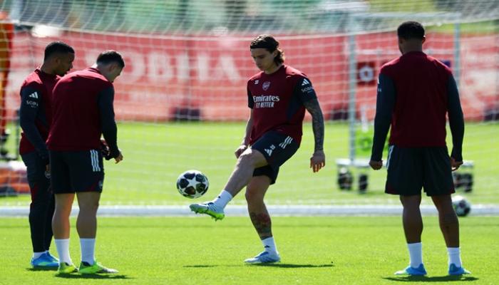 لفت لاعبو أرسنال الأنظار بتدريب غريب قبل مواجهة سبورتنغ لشبونة المرتقبة.