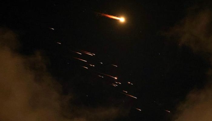 ورافق دوي صفارات الإنذار أصوات انفجارات في سماء إسرائيل أثناء محاولة اعتراض الصواريخ.