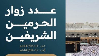 وأوضحت الإحصائية الصادرة عن الرئاسة أن عدد المصلين في المسجد النبوي وصل إلى 5,088,179 مصلٍّ، فيما استقبل المسجد الحرام نحو…